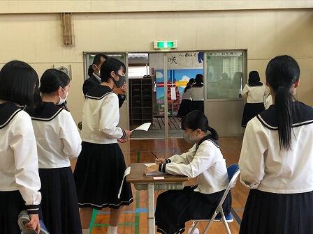 11日、参観日でした。前回の参観日が中止だったため、今年度2回目の実施になります。三学年は、高校受験の事務手続き等の入試説明会を行いました。いよいよ高校受験が迫ってきました。志望校合格に向けて頑張ってください。