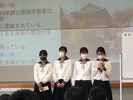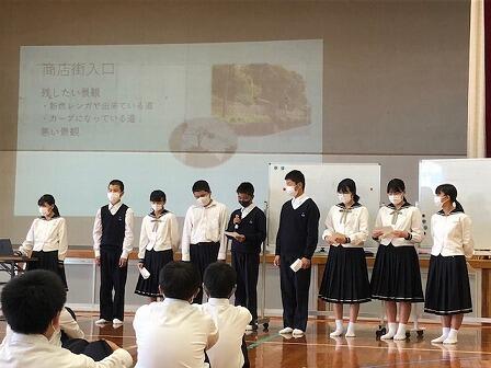 29日、市建築士の方々を迎え、くしま学「景観学習」の学習成果発表会を実施しました。現地調査で発見した、市内の工夫された景観や、景観を損ねているものについて発表し、理想とする景観について提言をしました。