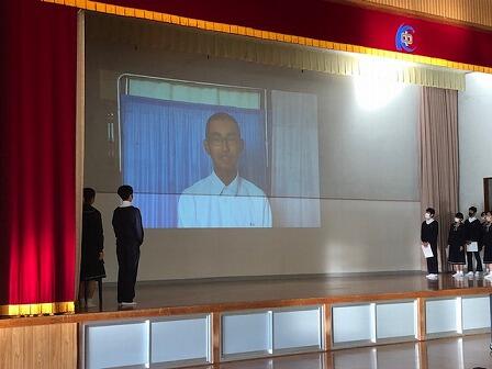 2日、新旧生徒会役員の退任および認証式を行いました。旧生徒会長はビデオによる最後のあいさつをし、新生徒会長は「伝統を引き継ぎ、新しい生徒会を目指す」と力強く抱負を述べてくれました。