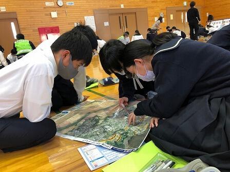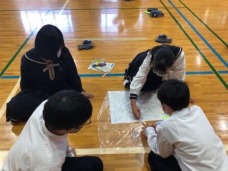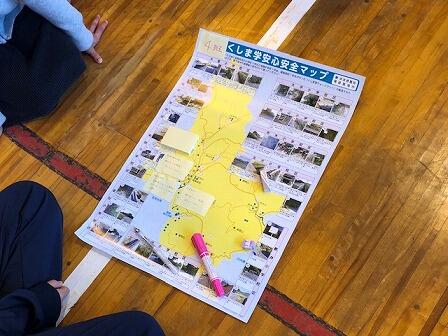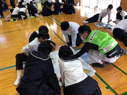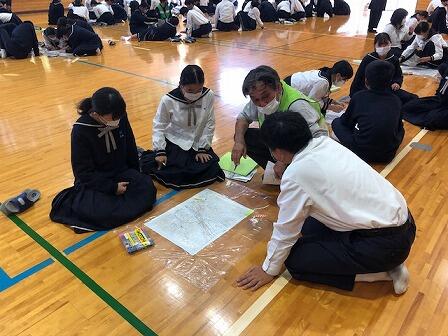 地域の防災士の方々を講師に迎え、防災ウォークラリーの事前学習を行いました。小学校区ごとの地図を使って、地域の危険個所をチェックしていきました。来週12日にウォークラリーを行い、現地調査を実施します。