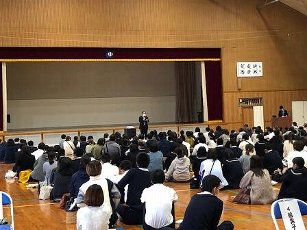 会場となった体育館にはたくさんの生徒つめかけ、盛りあがりました。