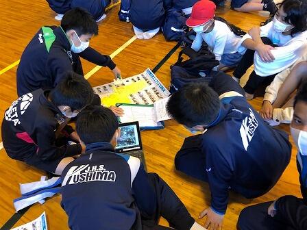 5月6日(木)に、福島高校視聴覚室にて、連携型中高一貫教育校として、共通している部活動での連携を図るため、串間中学校と福島高校の部活動顧問が一同に集まり、令和3年度第1回合同部顧問会を行いました。福島高校の那須校長、串間中の平田校長のあいさつの後、互いの学校の部活動顧問の自己紹介を行い、各部の活動状況の報告や練習等の相談をしながら、今年度の合同練習会の計画や交流会についての計画が立てられました。