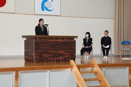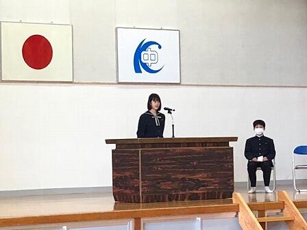 新入生誓いの言葉では、代表の生徒が、「中学生になる決意」と「感謝」を堂々と述べてくれました。