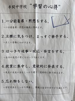 連休を前に、1年生は、家庭学習に関する内容を全体指導しました。学習のめやすの時間は、中学校120分となっています。良い習慣ははやく身につけて、将来の目標が達成できるように頑張ろう!