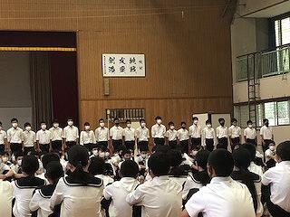 21日、一学期の終業の日を迎えました。各学年と生徒会代表の生徒から「一学期のふりかえり」が発表されました。それぞれに、反省、今後の目標と達成するための具体策が示されました。今後の成長が期待されます。