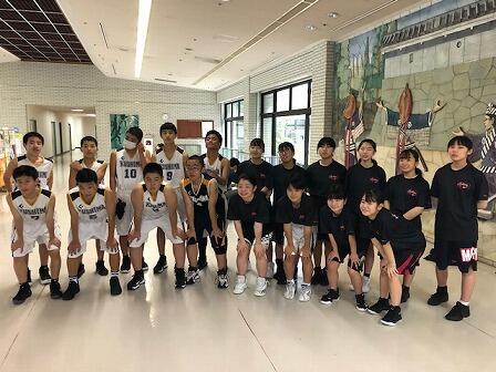 写真は、奮闘及ばず、敗退した男女バスケットボール部です。最後まで走り切りました。お疲れさまでした。