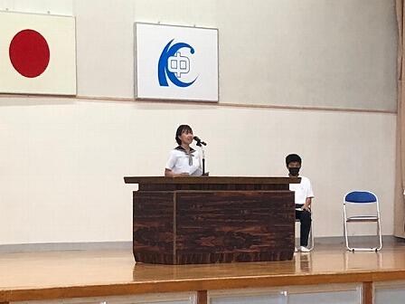 各代表の生徒が「2学期の抱負」を述べ、学校長からオリンピックをふまえた学校行事への取組について話がありました。残暑厳しいスタートです。感染症予防と体調には十分気をつけて学校生活を送りましょう。
