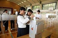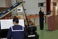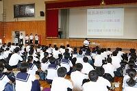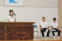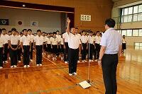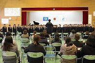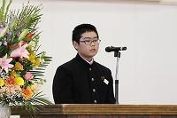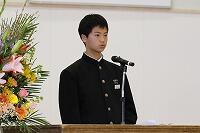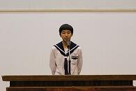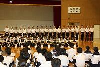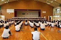 代表生徒による意見発表の後、全員で誓いの言葉を朗読し、元気よく校歌を歌いました。
