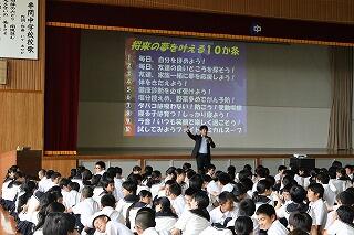 もっタイムの時間に第13回南那珂地区中学校秋季体育大会に向けて、選手激励式を実施しました。