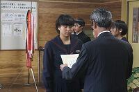 11月14日(火)、日南税務署より表彰状を届けていただき、土肥昭彦教育長から受賞した生徒へ賞状を授与していただきました。