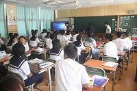 9月22日(金)5・6校時に3年生を対象に「第2回高等学校説明会」を実施しました。今回は、福島高校、日南高校、日南振徳高校、尚志館高校の4校にお願いしました。説明は学級ごとに行い、4つの高校の先生方が教室を移動しながら説明をしていただきました。保護者の参加もあり、充実した説明会となりました。