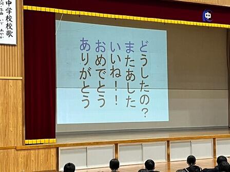3日の生徒集会の様子です。各専門委員会から取組について報告がありました。来年度の新入生に向けた取組もあり、年度終盤を感じます。執行部からは「ポジティブワード」推進の取組として「あおいまど」の具体策が実演を交えて紹介されました。校内外に「ポジティブワード」が広がるといいですね。