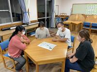 本日、放課後に福島高校、串間中学校それぞれの生徒会執行部が集まり、お互いの取組について報告をしました。福島高校の先輩方から引き継いだ、「正の五箇条」「あおいドア」「あおいまど」の取組についてアドバイスをもらいながら、どのように進めていくのかを確認できる時間となりました。