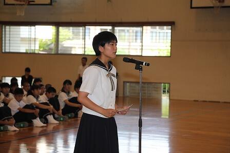 8日(土)から始まる地区総合体育大会に出場する選手の激励式を行いました。串間中の代表として、悔いのないように試合に臨んでください。各部の健闘を祈ります。