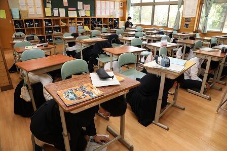 24日、新旧生徒会役員による「コロナに負けない集会」を実施しました。「病気にならないために・・・」「不安にならないために・・・」「差別をうまないために・・・」という3つのテーマで活発な意見交換がなされました。集会後に「自分にできること」を書いて、各教室に掲示しました。