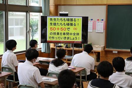 26日、主題研究と授業の在り方について、生徒向けに集会を行いました。各教室でスライドを見ながら、「読解力」を高める授業づくりについて話し合い活動も含めて考えていきました。教師と生徒相互に「インプット」、「アウトプット」を意識しながら授業をつくっていきましょう。