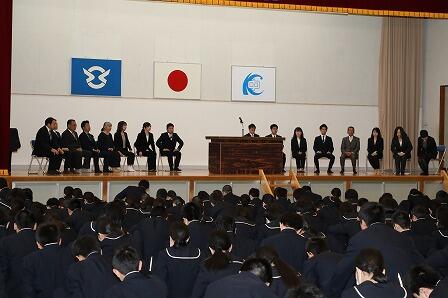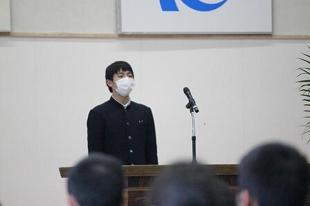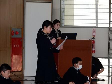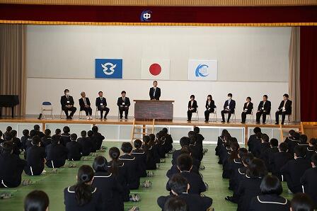 各学年と生徒会代表が2学期の反省を述べてくれました。それぞれの学年で反省すること、目標達成できたことがあったようです。学校長からは学校行事をはじめ、2学期を振り返っての話、新年に希望することの講話がありました。