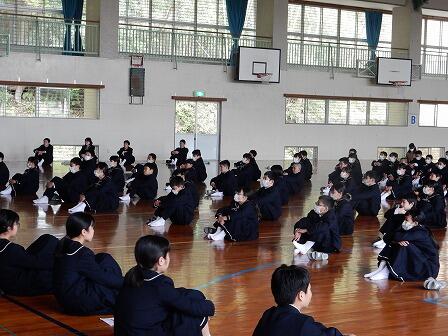 5日に実施された、生徒会主催の「3年生を送る会」の様子です。今年度の体育大会の団に分かれ、ジェスチャーゲームを楽しみました。最後の問題は、集団ジェスチャーで演じた3年生も苦労してましが、いい思い出になったようです。