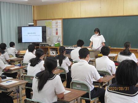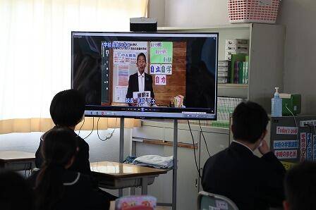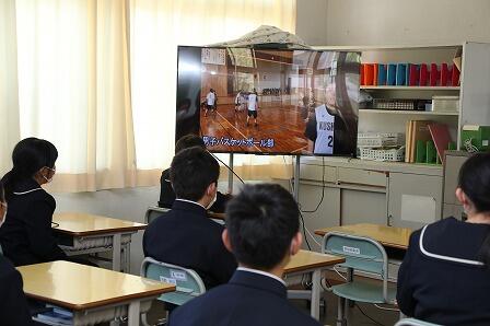 例年、体育館で実施される部活動紹介ですが、感染拡大防止のため、各教室で、動画による紹介となりました。それでも、各部の活動の様子や雰囲気がよく伝わった内容だったと思います。1年生の皆さん、部活動の目的をよく理解して、入部するようにしましょう。
