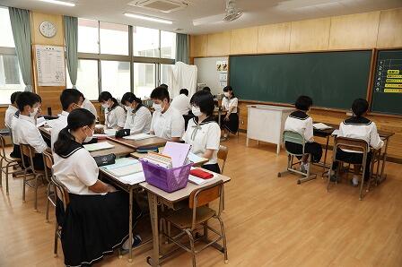 4日、学校支援訪問でした。中部教育事務所と串間市教育委員会の先生方を迎え、本校が取り組んでいる「読解力向上」についての授業に関しての助言をいただきました。写真は3年生の理科の授業の様子です。話し合いなどのグループ活動もさすが三年生という授業態度でした。各学年、集中授業をしてくれた先生方、お疲れ様でした。