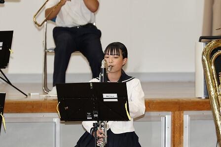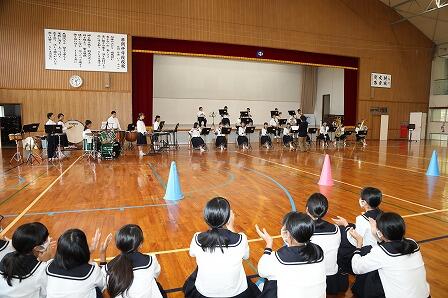 19日、吹奏楽部が本年度最後の演奏をしました。1年生の新入部員も少なく、勧誘を兼ねての演奏でした。文化発表会も中止になったため、3年生の演奏する姿は今回が見納めです。昼休みということもあり、たくさんの生徒が聴きに訪れて、拍手をおくっていました。
