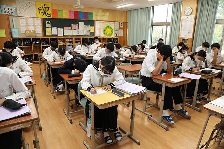 17日、今年最後の参観日でした。1、2年生は、本校が取り組んでいる「読解力向上」の授業を保護者に参観してもらいました。3年生は進学説明会を行い、高校入試に向けた心構えや事務手続きについて、保護者と生徒に確認してもらいました。期限内の書類提出にご協力ください。