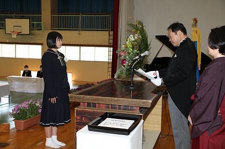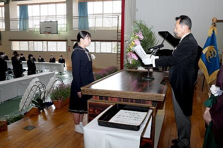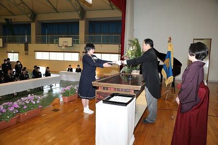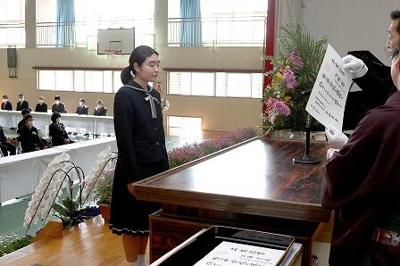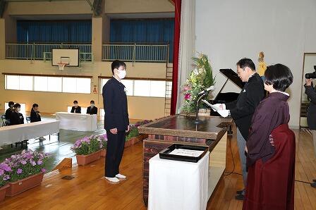 16日、第4回卒業式を行いました。感染症対策のため、在校生の臨席はできませんでしたが、生徒会役員がボランティアで参加し、受付や会場運営に尽力してくれました。