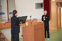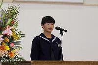 代表生徒による意見発表の後、全員で誓いの言葉を朗読し、元気よく校歌を歌いました。