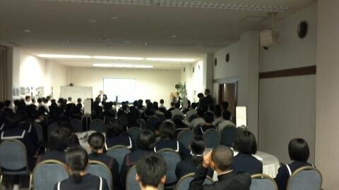講師の計屋道夫さんによる被爆体験講話を聞いています。