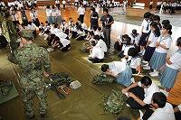 串間市出身(北方中・福島高校卒)で、現在、自衛隊宮崎地方協力本部日南事務所の原口小百合所長及び陸上自衛隊都城駐屯地の隊員13名の方々を講師に実施しました。