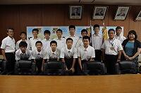 8月22日から始まる全国中学校バレーボール大会へ宮崎県代表として出場する男子バレー部が、佐藤副市長、土肥教育長、野邉学校政策課長に全国大会出場の報告を行いました。
