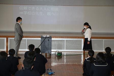 4日から始まった第72回人権週間に因んで、本校でも、様々な教育活動で人権教育を実施しています。7日は「人権教育旬間における県弁護士会による出張授業」を開催しました。はまゆう法律事務所の梶永 圭先生を講師に迎え、主に「いじめ」に関する人権について詳しく講義していだだきました。