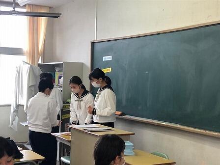 各委員会の目標や具体策について、各学級で意見を出しました。1年生については不慣れな討議でしたが、生徒会役員の上手なサポートで、活発な意見がだされていました。