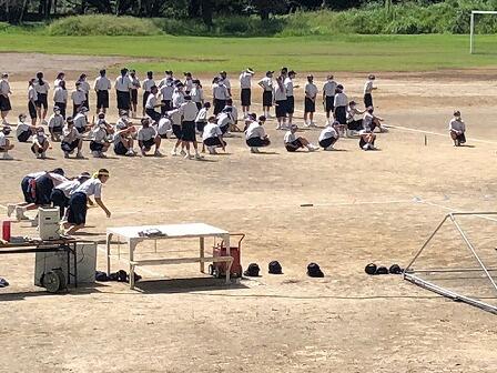 体育大会に向けての練習がはじまりました。今日は、「学年体育」です。残暑厳しいなか、準備体操や学年リレー、バトンパスの練習がありました。