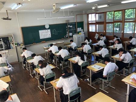 3年実力テスト、1・2年課題テストが始まりました。感染症対策、残暑厳しいなかでの学校生活ですが、ひとつひとつクリアしていきましょう。