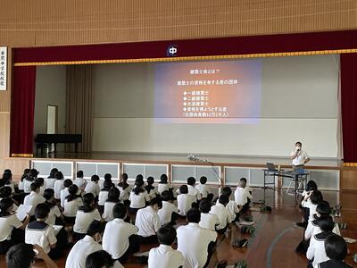9月16日(金)に1年生総合の景観教室の講話がありました。10月に行う、串間市内校外学習を事前授業として串間市の建築士会の方々が来校していただき、串間市の景観について学びました。その講話を活かして、来月ある校外学習で頑張ってほしいです。