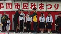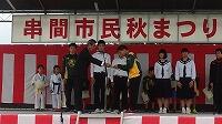 11月3日に行われた「串間市民秋まつり」のメイン会場で、今年度九州大会、全国大会で活躍した小中高生の表彰が行われました。