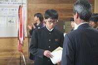 串間中学校関係では、全日本中学校バレーボール選手権大会に出場した男子バレー部と南九州小編成吹奏楽コンテストに出場した吹奏楽部に、土肥昭彦教育長より表彰状が手渡されました。