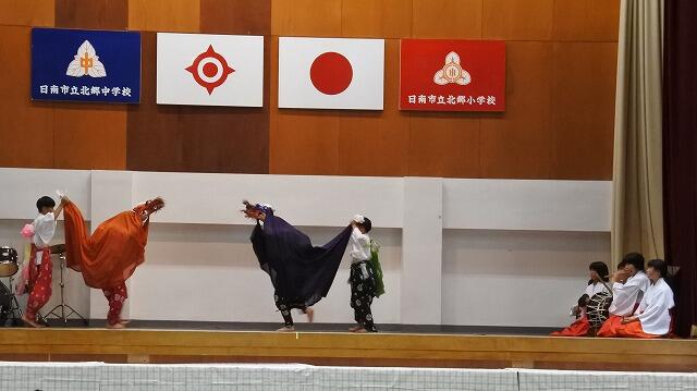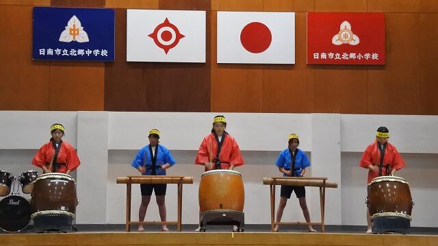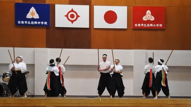 北郷小中学校では、7年生全員が北郷に伝わる伝統芸能を学ぶことで、ふるさとへの誇りと愛着をもつ生徒を育てています。