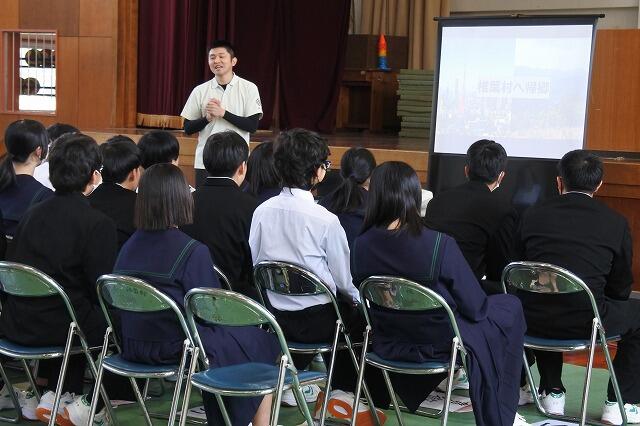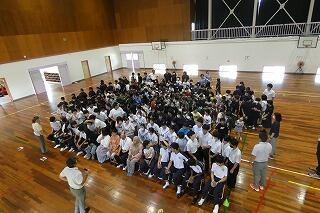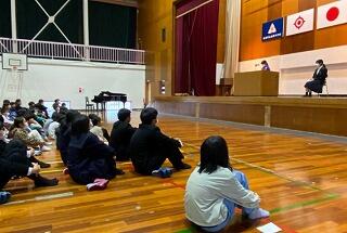 8年生の立志のつどいを、本日実施しました。第1部では、保護者や同級生が見守る中、自分が選んだ漢字一文字について、その選んだ理由等を全員が発表しました。第2部では、椎葉村のお菓子店”菓te-ri”の代表である、椎葉昌史さんを講師に招いて、これまでの体験に基づいた話や、中学生に期待したいことなどを話していただきました。質問コーナー等もあり、生徒は楽しみながら興味深く聞き入ることができました。