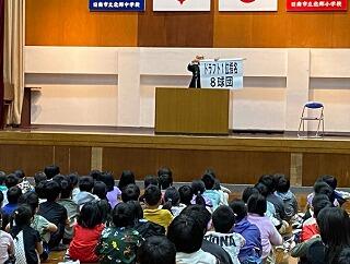 小学生も中学生も大いに楽しみ、最後は図書委員会のみなさんに大きな拍手を送りました。