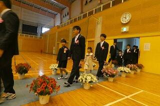 1年生と7年生が手をつないで入場する姿は、小中一貫校ならではです。