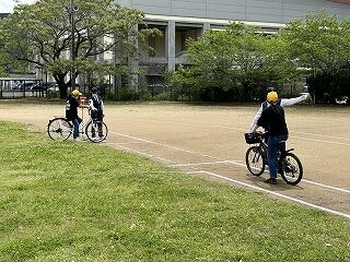 5、6、7年生は、自転車の乗り方や注意すべき点について実演を通して学びました。