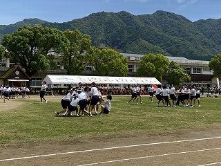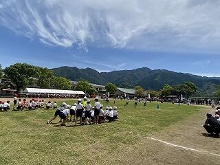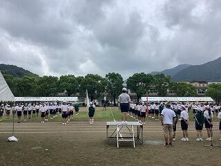 心配された雨も降らず、曇天のおかげで熱中症の危険性も下がり、予定通りに運動会を実施することができました。今年度も半日開催ではありましたが、徒競走やリレー、団技、ダンスに加え、それぞれの団員全員で取り組む応援合戦もあり、児童生徒が全力を出し切って活動することができました。
