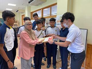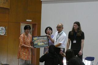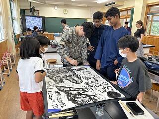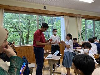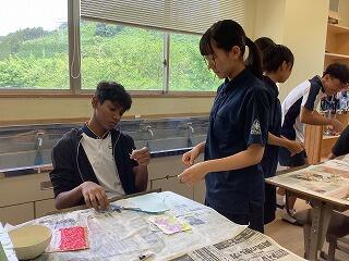 出発前には、美術の交流授業で作った和紙(葉書)をプレゼントしました。