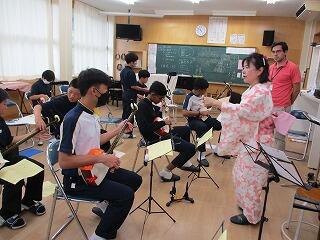 7年生は、総合的な学習の時間で、地域に伝わる伝統芸能を学んでいます。