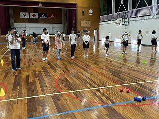 5年生が、そのテーマソング「ひなたのチカラ」に振り付けされたダンスを練習しました。