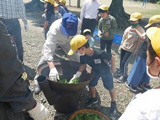 五月晴れの爽やかな青空の下、恒例の茶摘み体験学習を3年生が行いました。今年も地域コーディネーターの郷谷先生を始め、3名の地域の方々のご指導をいただきながら、茶摘みから茶もみまでの過程を体験することができました。そして、自分たちがつくったお茶を美味しくいただきました。今、このような体験を家庭ですることがなくなってきているので、貴重な体験となりました。ありがとうございました。
