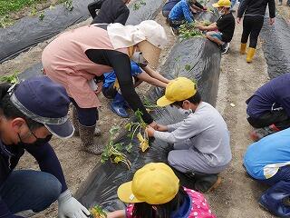 今日は、地域コーディネーターの郷谷先生のもと、JAはまゆう青年部の方々を講師として、芋植え体験学習を行いました。本校は、幼小中一貫教育を行っており、各種行事は可能な限り、活動を共にしています。本日は、密を避けるため、一緒に活動せず、時間差で体験しました。秋はみんなと一緒に収穫し、美味しいお芋をいただけるようになることを楽しみにしています。