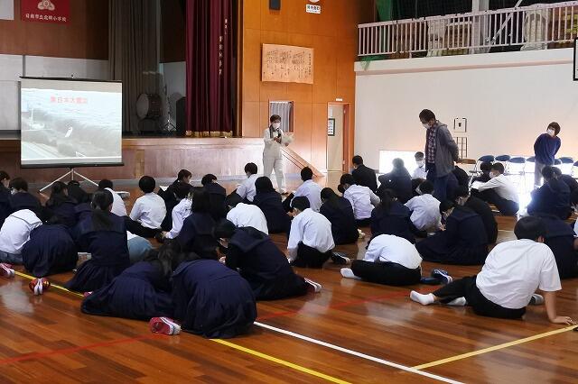 人権週間の取り組みとして、今年度も、日南人権擁護協会の方々に来ていただき、人権の学習を実施しました。中学生は『あたたかさを分け合って』と題して、東日本大震災で被災して見知らぬ土地に転入してきた主人公を、転校先の生徒が偏見や差別をもたず、あたたかく迎え入れてくれたビデオを視聴しました。そのビデオを通して、「大変なときこそ支え合う」大切さや、「正しく理解することが差別や偏見をなくす」ことを学びました。